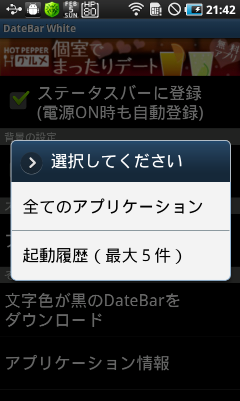 また、ステータスバーから指定したアプリケーションの起動をするランチャー機能もあるのがちょっと便利ですね。