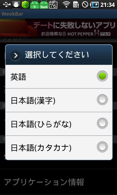 Androidマーケット:http://market.android.com/details?id=jp.sakurasoftwear.weekbar