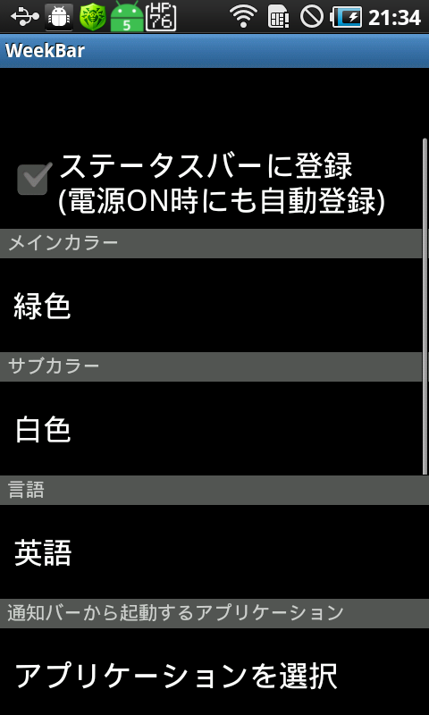 まず、DayBar 日本語版をアプリ一覧のアイコンから開くと設定画面が出てきます。