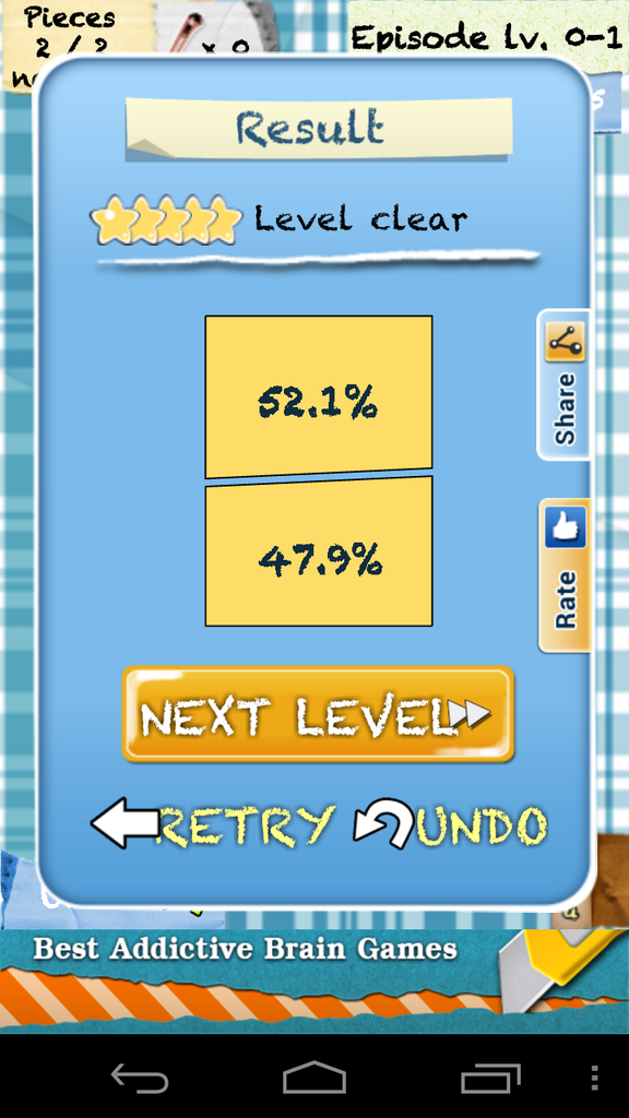 指をスライドさせた通りに図形は切れて、面積比率が出ます。ちょうど真っ二つにしたはずなのにズレてる!悔しい!