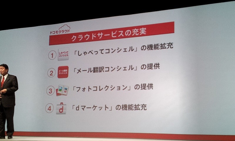 サービスとしても、「ドコモクラウド」サービスとしてクラウドサービスを本格展開することや、角川書店と共同でスマートフォン向けアニメ配信事業を行う合弁会社「ドコモ・アニメストア」を設立し、dマーケット内に「アニメストア」を開始したり、「MUSICストア」に定額サービスを導入するなどdマーケットの拡充を行なっています。