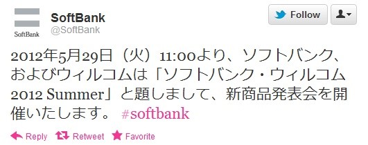 ・Twitter / @SoftBank: 2012年5月29日(火)11:00より、ソフトバン ...