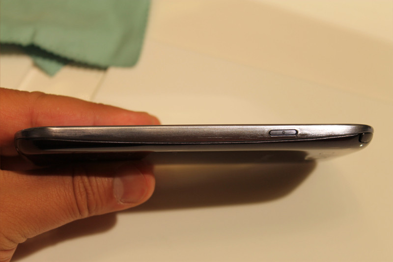右側面には電源ボタン、左側面には音量ボタンがそれぞれ配置されています。