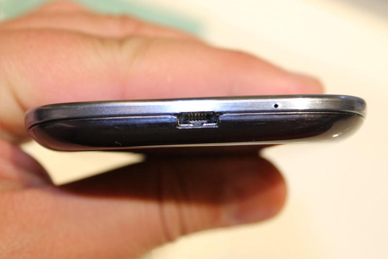 底面側にはmicroUSB端子と通話&動画撮影時に使用するマイクがあります。