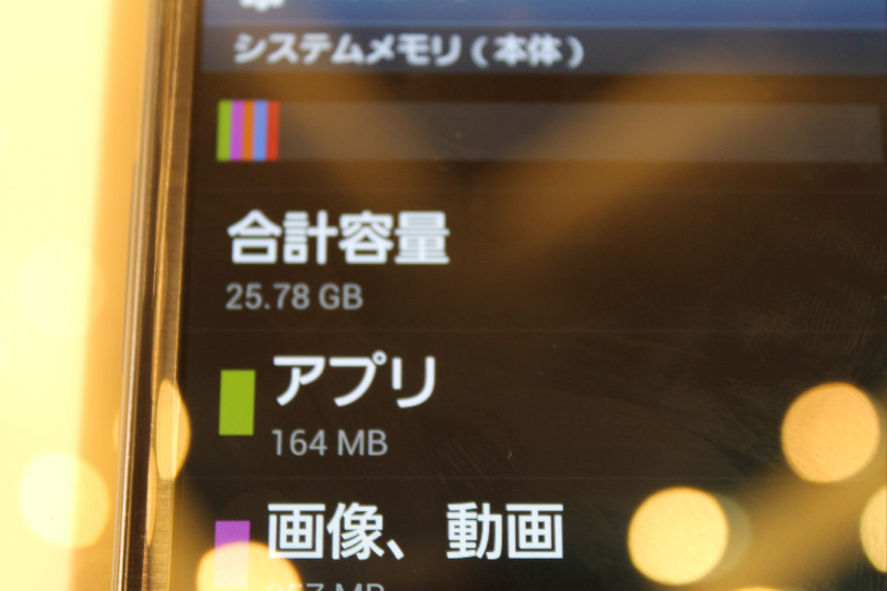 本体メモリは全部で32GBで、空き容量は25GB強程のようです。