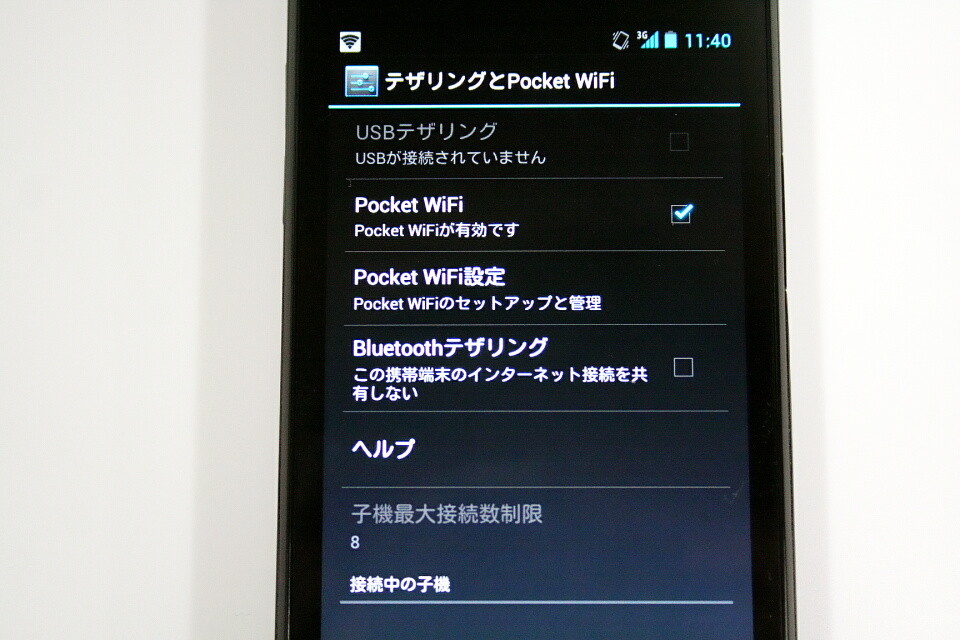 | Pocket WiFi機能(テザリング) | 同時接続可能台数 | 最大8台 |