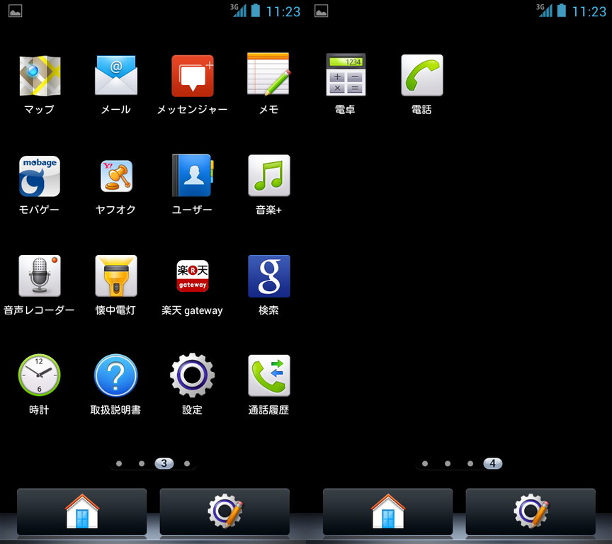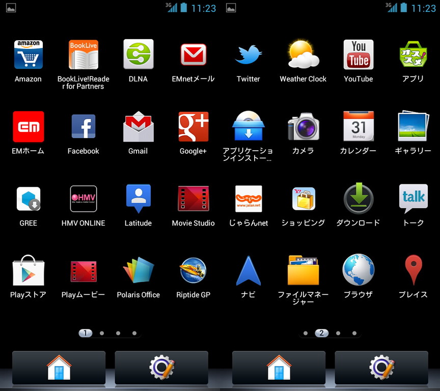 アプリ一覧1ページ目(左)と2ページ目(右)