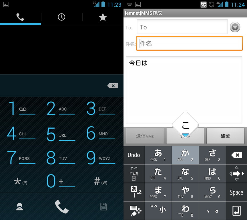 通話発信時のダイヤル画面はクールなデザインを採用している。日本語文字入力システムには、GS02から引き続き「FSKAREN(エフエスカレン)」を搭載している。もちろんフリック入力も可能。