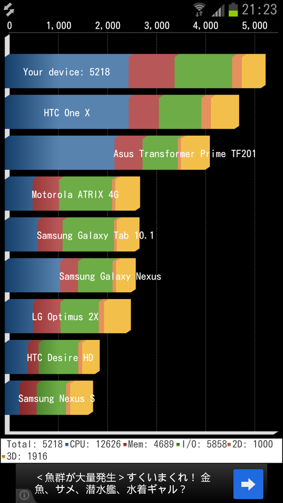 さすがに、クアッドコアCPUを内蔵する国際版GALAXY SIIIは圧倒的なベンチマーク結果をはじき出します。
