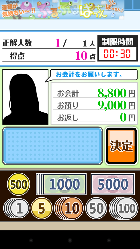 ゲームはコンビニ店員になりきって、ひたすらお釣りを返していきます。