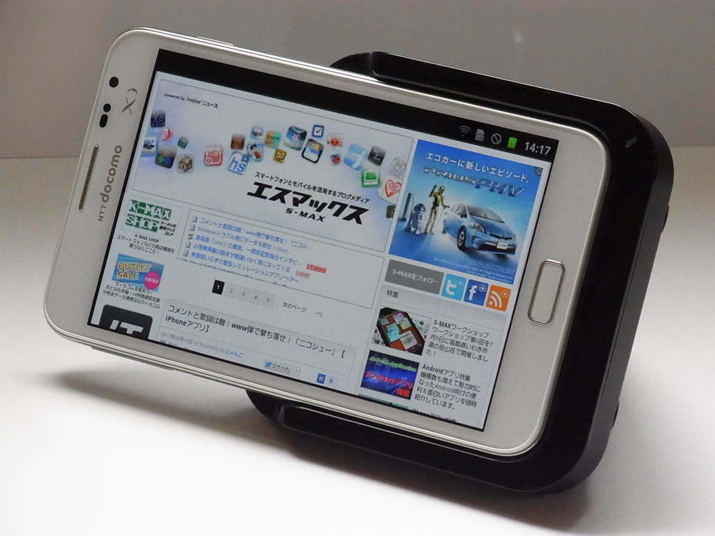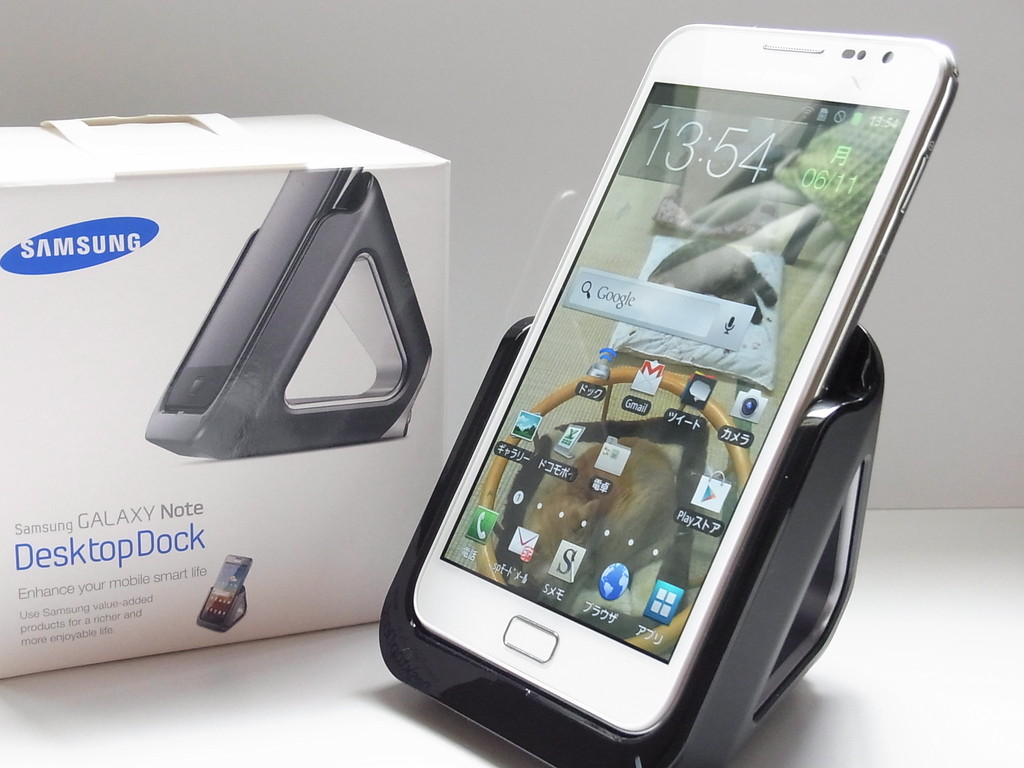 ということで、スピーカーとオーディオ端子が付いていて大迫力のサウンドが楽しめるGALAXY Note専用のデスクトップドック「Samsung純正 オーディオOUT付クレードル」を紹介してみたいと思います。