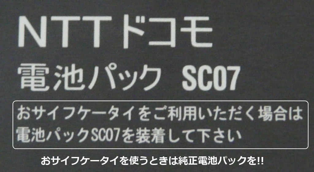 ちなみに、おサイフケータイのアンテナはバッテリーに付いているので、おサイフケータイ機能を使う場合は、純正バッテリーをしっかり装着しましょう。
