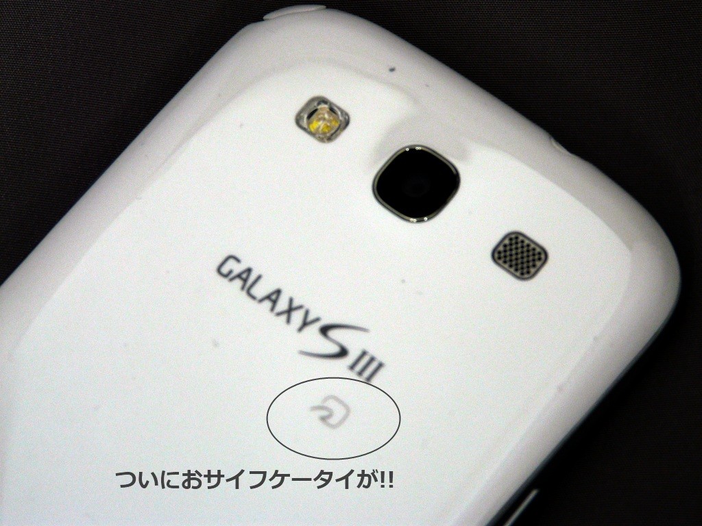 SC-06Dで個人的に最大の注目ポイントが「おサイフケータイ」(モバイルFeliCa)チップが搭載されている点。海外のGalaxy SIIIでは、概ねNFC(Near-Field Communication)チップを搭載しているのですが、日本モデルであるSC-06Dでは、代わりにおサイフケータイを搭載しました。