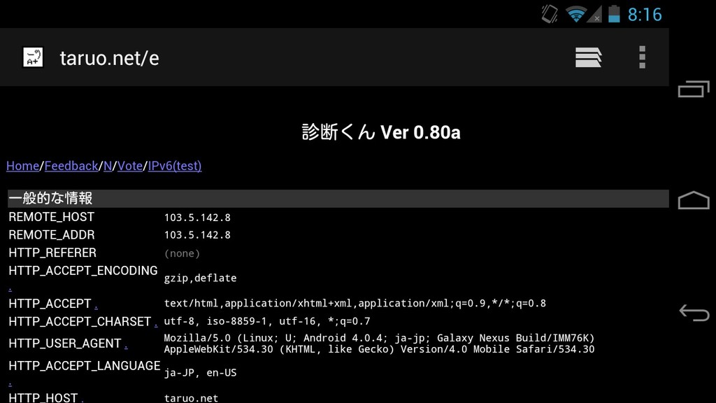 ネットワーク環境としては、10.4.135.xxxというプライベートアドレスが割り当てられ、ポート制限やサイト閲覧制限などもほぼないようで、試した限りではWebページ閲覧で見れなかったというページはありませんでした。動画なども閲覧できていました。
