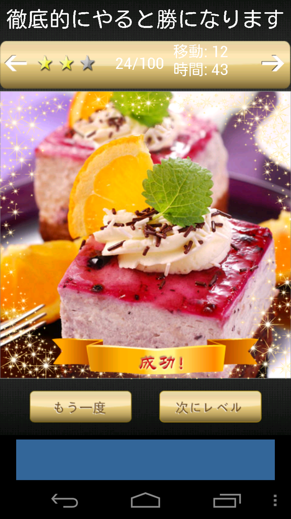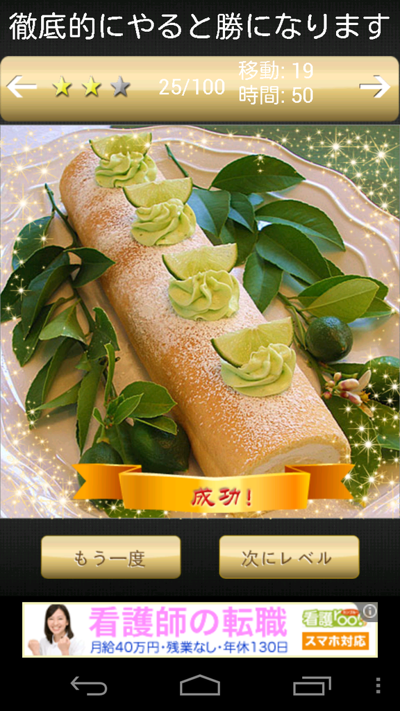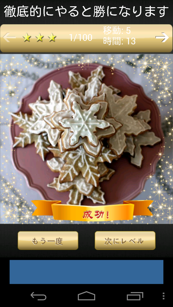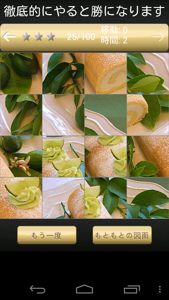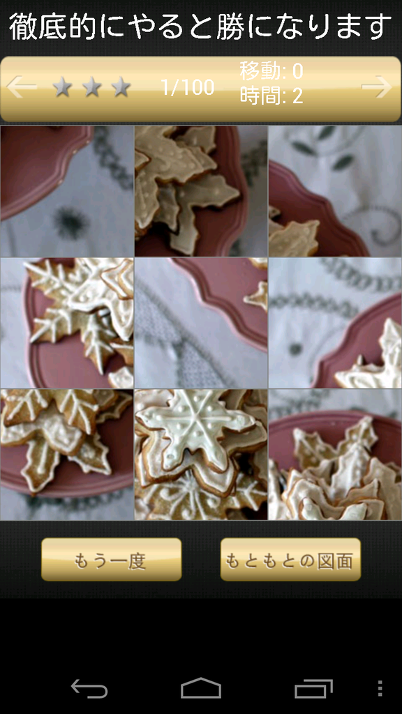 移動するピースが少ないほうが、短時間で完成させるほうが、★が多くつきますよ。