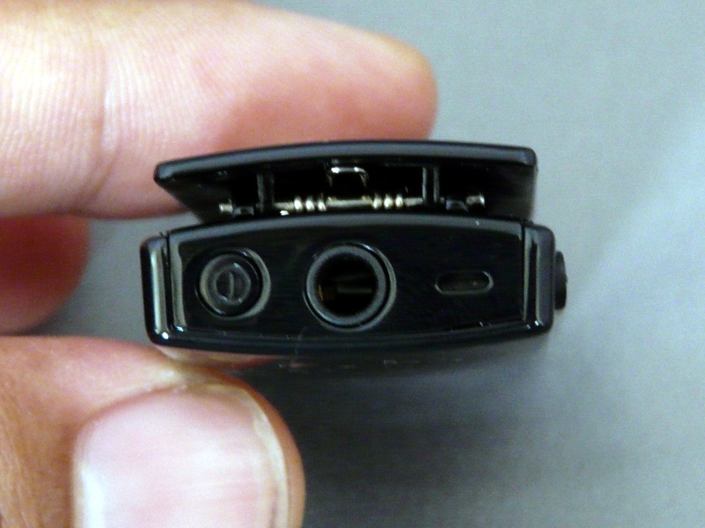クリップ上部は、蓋になっていて、そこを開けるとmicroUSB端子とmicroSDカードスロットがあり、4GBのmicroSDHCカードが標準で挿入されています。microUSB端子は充電で使うんだろうな、と想像できますが、microSDカードスロットは何のためにあるのでしょうか?