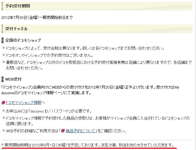 まだ正確な発売日が決定したわけではありませんが、決定次第、別途お知らせされるとのことです。また、事前予約は、ドコモショップによって受付台数などは異なるため、詳しくは、各店舗に問い合わせして欲しいとのことです。