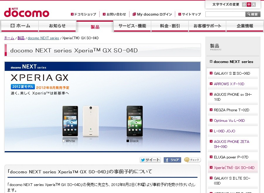 | Xperia GX SO-04Dが8月9日に発売予定! |