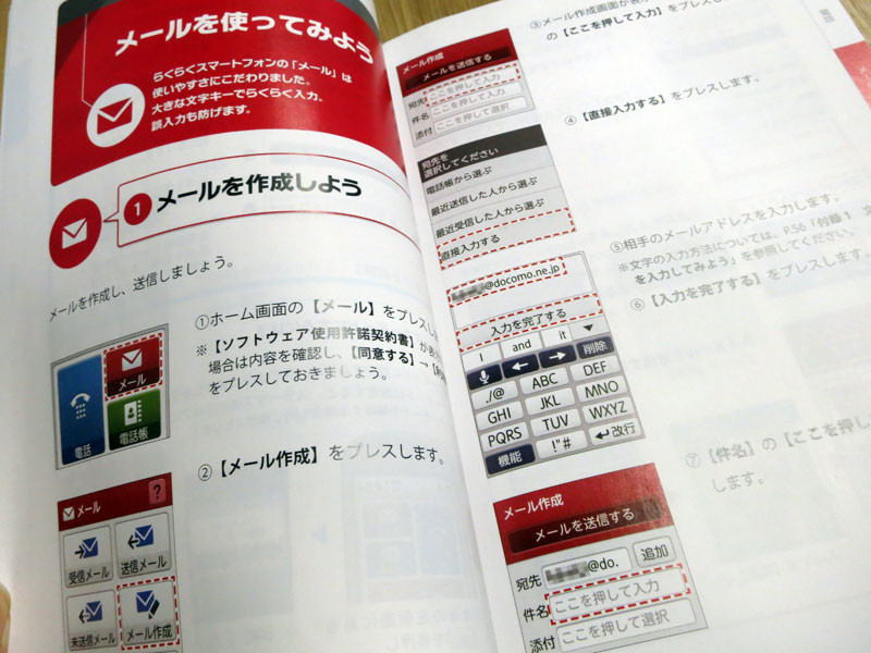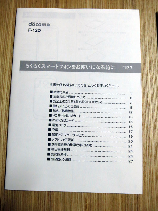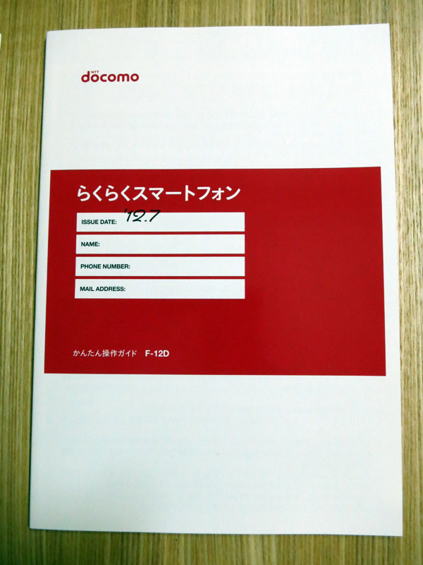 らくらくスマートフォン F-12Dを購入すると、取扱説明書より更に詳しく端末の使い方を説明した冊子を貰うことができます。