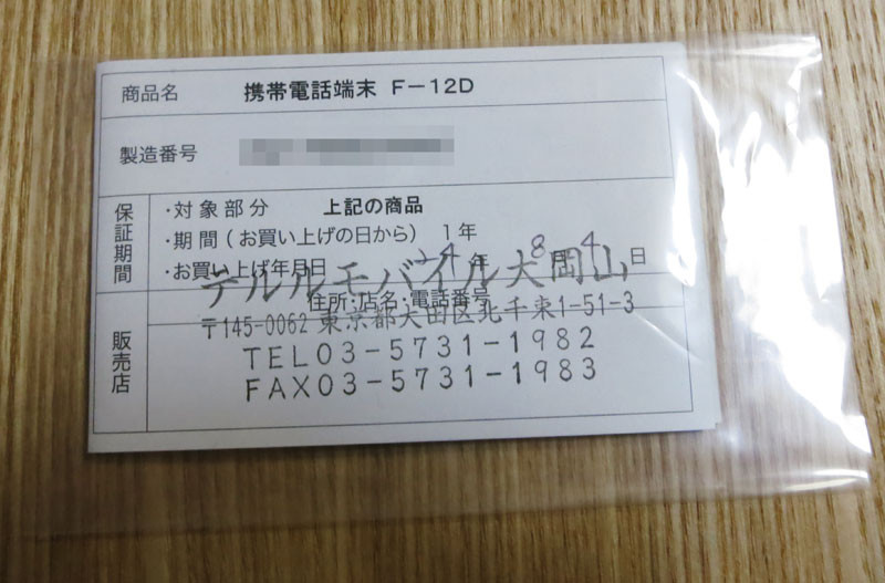 保証書。