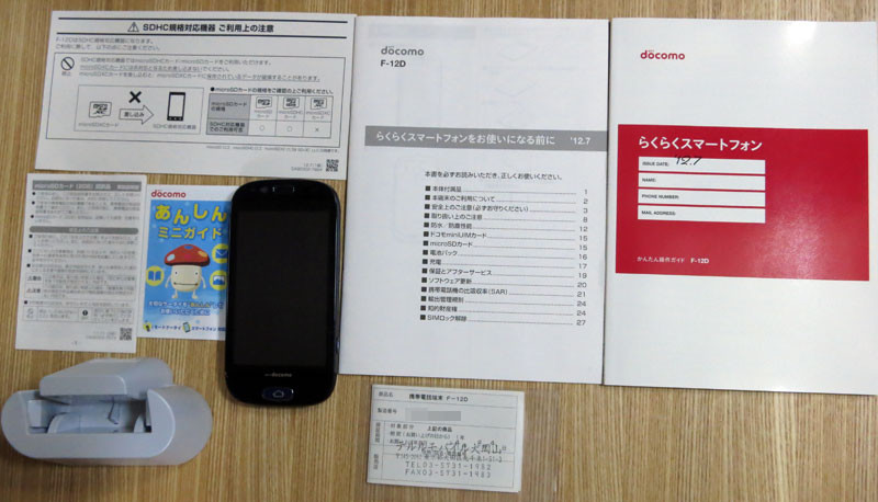 今回は、らくらくスマートフォン F-12Dのパッケージや配布物について紹介しました。次回は内部ソフトウエアについて紹介していきますのでお楽しみに。