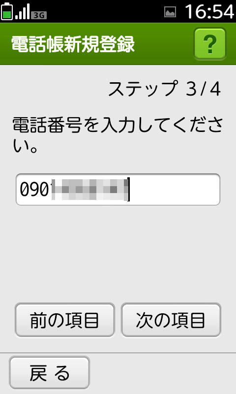登録は従来のらくらくホンシリーズと同様に一項目ずつの登録となっています。簡単なガイダンス表示とステップ(段階)通り操作していくことで簡単に登録ができます。