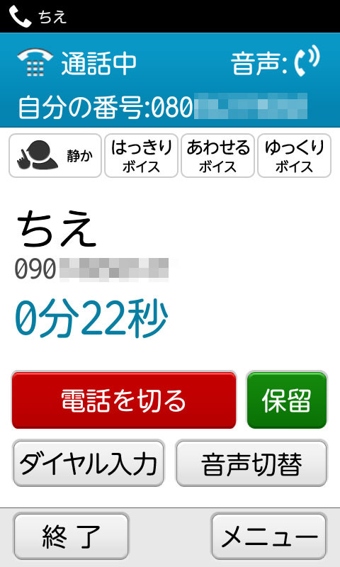 通話画面のアイコンをタップで切り替えられると分かりやすかったのですが、メニューから各機能を選択する形式になっています。