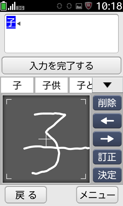 漢字も含む手書き入力にも対応しています。しかも、予測変換にも対応しているので全ての文字を入力する必要もありません。