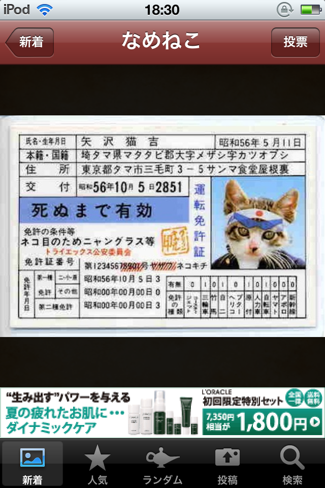 一世を風靡したなめねこですよ!なめねこ!右上の「投票」から評価星をつけることができます。