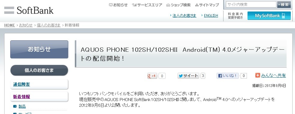・AQUOS PHONE 102SH/102SHII Android(TM) 4.0メジャーアップデートの配信開始! | ソフトバンクモバイル