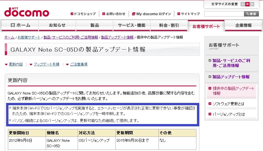・GALAXY Note SC-05Dの製品アップデート情報 | お客様サポート | NTTドコモ