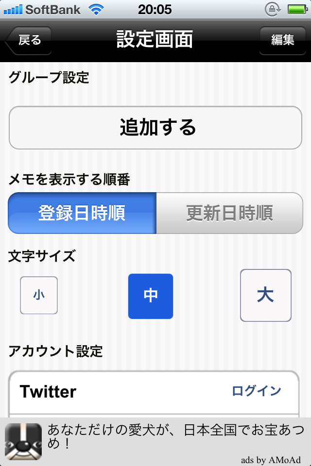 「設定」→「グループ設定」の順に仕事やプライベートなどのフォルダを作っておくとメモを書いたフォルダを選べるので後で見返すときに便利ですよ。グループは設定画面の「編集」からいつでも追加、削除ができるのも便利です。