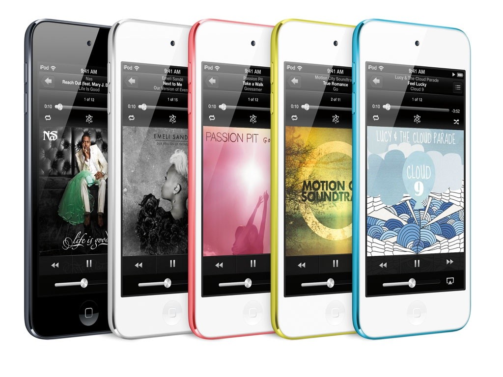 新しい第5世代iPod touchは4インチRetinaディスプレイやアルミボディを採用し、新しくカラーバリエーションを5色用意されています。ボディーカラーは従来のようなスレート(ブラック)に加え、シルバーやピンク、ブルー、イエローがあります。