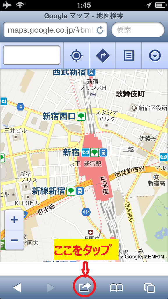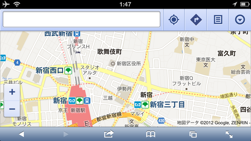 すると、モバイル向けの見覚えのあるGoogleマップが表示されます。新宿駅も今まで通りの情報量となります。