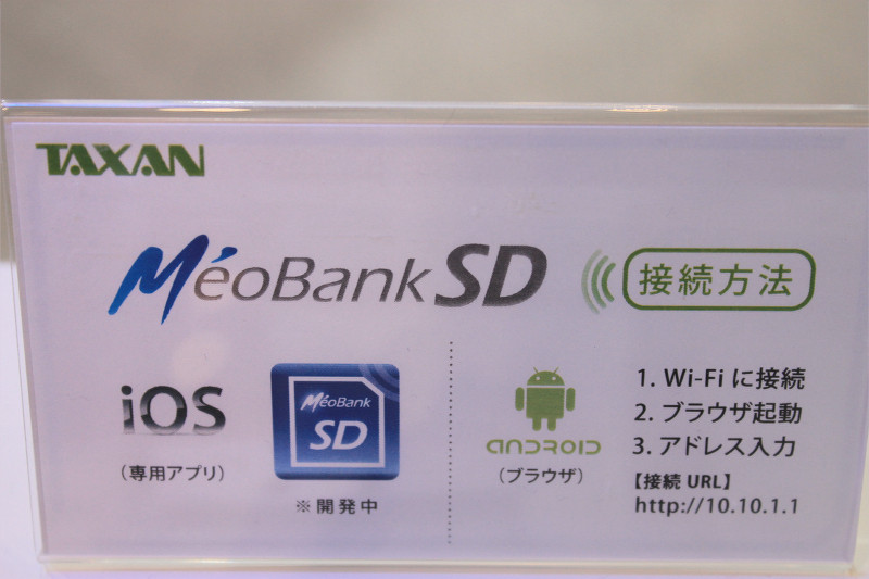 今回は、CEATEC JAPAN 2012における加賀ハイテックブースにて展示されていた小型の固定網用Wi-Fiルーター機能も備えたバッテリー駆動可能なワイヤレスストレージ「MeoBankSD」を紹介します。