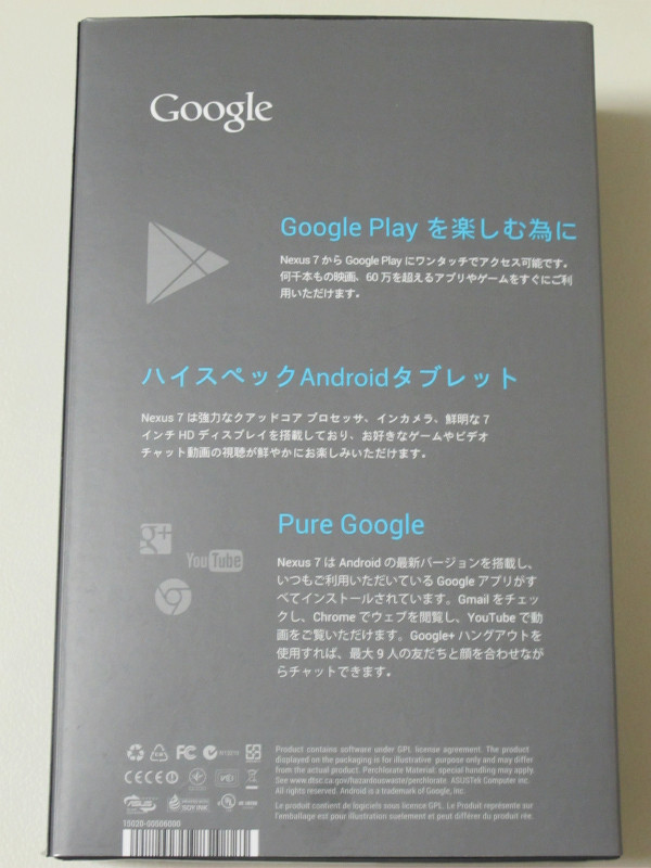 Nexus 7本体の登場、プラスチックのカバーで覆われているところも国内外版共通のようです