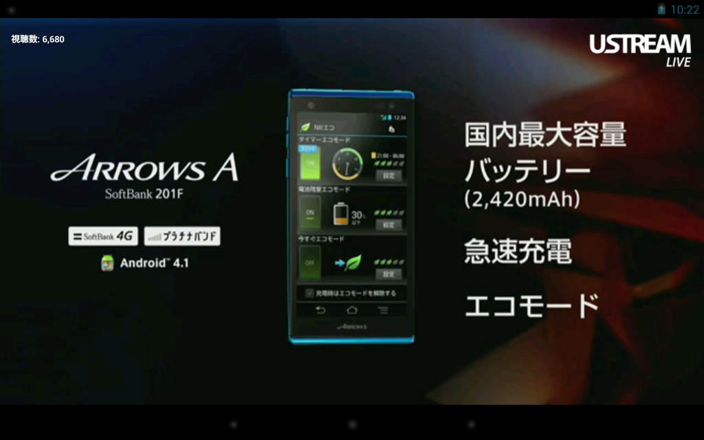 ソフトバンクモバイルは9日、2012年冬から2013年春にかけて発売する予定の新らしいスマートフォンなどを発表する「新商品発表会 「2012 Winter - 2013 Spring」」を開催し、TD-LTEに完全互換性があるとされる超高速通信規格「AXGP」によるデータ通信サービス「SoftBank 4G」に対応したAndroidスマートフォン「ARROWS A 201F」(富士通製)を発表しています。2013年2月上旬以降に発売予定。