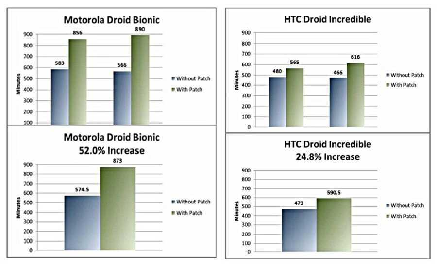 同テストの結論では、テストした機種全てでバッテリー使用可能時間を延ばす効果があるとしている。ただし、機種による効果差は大きいとも述べられている。Android系端末で効果が大きく、BlackBerry、iPhoneの順となる。iPhoneの効果が低めなのは、構造上バッテリーと密着して利用できないためらしい。