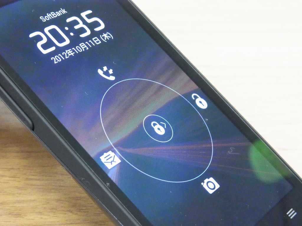 ファーウェイ端末ではおなじみとなった独自のロック画面では右にフリック→通常のロック解除、上へフリック→電話、左にフリック→メール、下にフリック→カメラを素早く起動させることができます。
