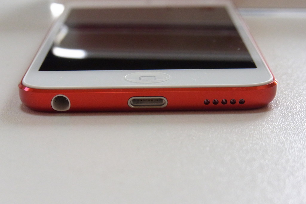 第4世代iPod touchと比べても第5世代iPod touchは薄くて軽くなっています。第4世代iPod touchはスピーカーが右、イヤホンジャックが左となっていましたが、第5世代iPod touchではスピーカーとイヤホンジャックの位置が逆になっています。