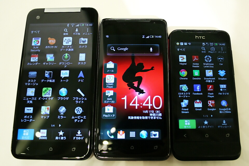 HTL21(左)、ISW13HT(中央)、HTC One V(右)