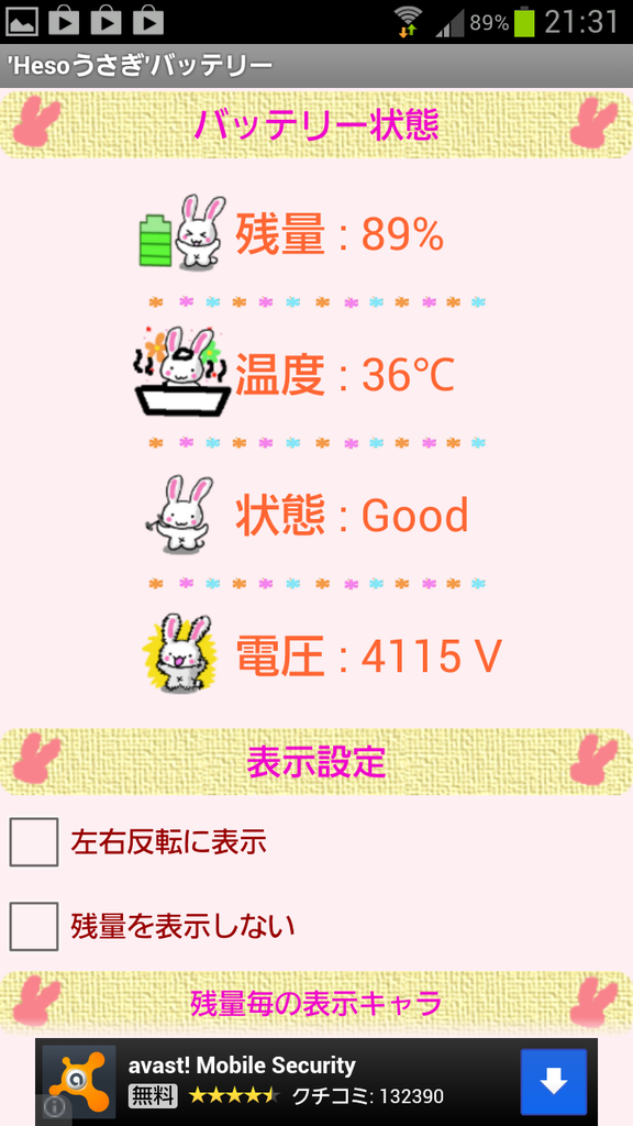 バッテリー残量に応じてうさちゃんの状態が変わって可愛いです♪