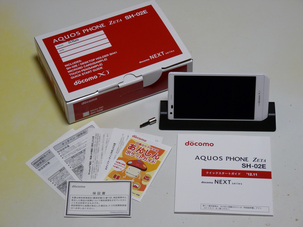 箱を開けたところ 上がSH-02E、下が卓上ホルダ