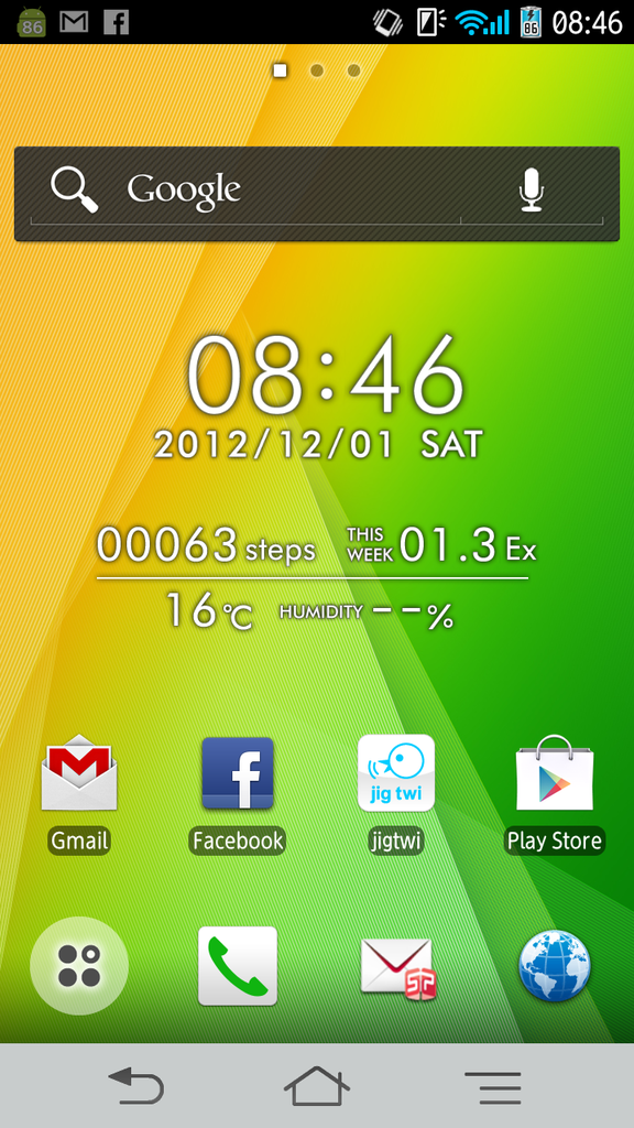 あと、これは「素」の議論ではありませんが、Androidでは、画面解像度の「断片化」も問題です。上に挙げたのは、手持ちの富士通製端末3台のホーム画面です。