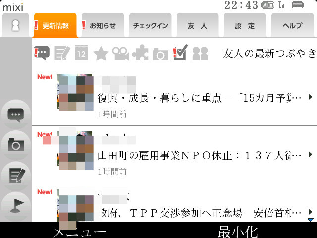 ログイン成功するとつぶやき一覧が表示されます。あとは日記を付けるなりメッセージを送るなり、つぶやくなりと自由に利用ができます。