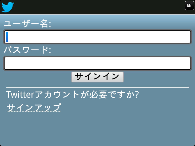 続いて「Twitter」です。このアプリもすぐにログイン画面が表示されるので、ユーザー名とパスワードでログインしましょう。