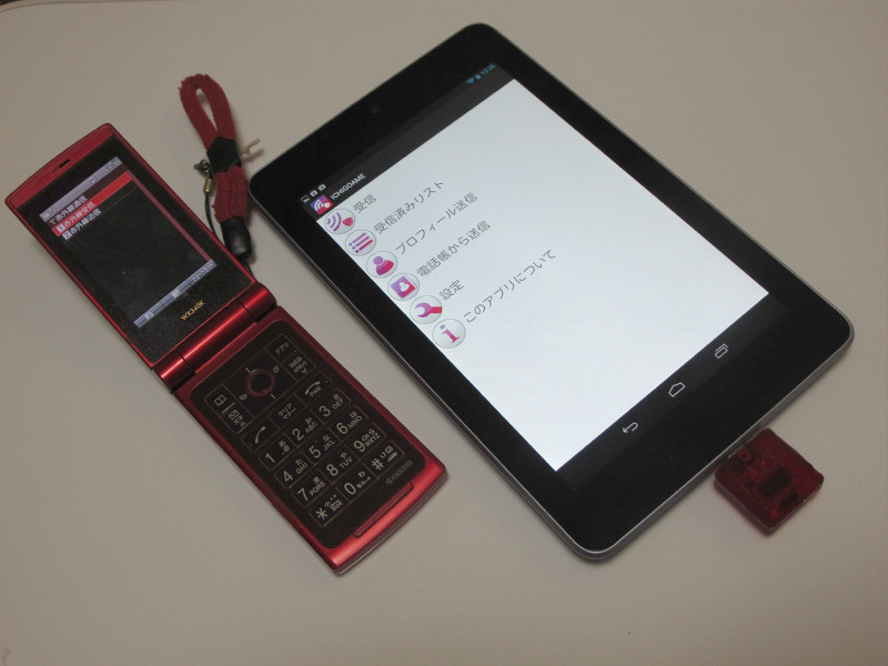 7インチのAndroidタブレット「Nexus 7」で、いちごあめを試してみました。転送元の端末はウィルコムのPHS「WX340K」(京セラ製)です。
