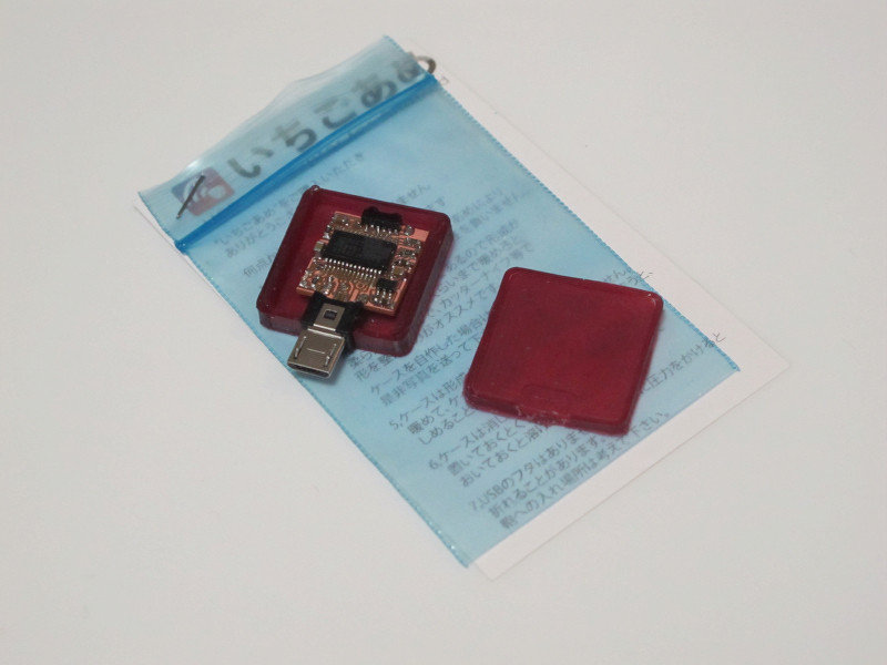 いちごあめはAndroidのmicroUSB端子に接続して赤外線通信機能を利用できるようにする周辺機器で、会場頒布価格は1,500円でした。