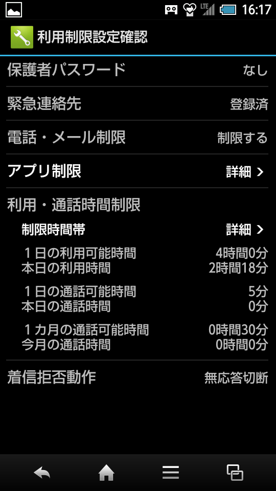 使いすぎが心配、という懸念に対しては、時間帯指定・累計時間による利用制限をかけることが可能です。例えば、家にいる時間帯は利用を禁止、とか、10時間以上使ったらもう使えない、とか、家庭で決めたルールに従って運用しやすいように工夫されています。もちろん、利用時間の把握も簡単です。