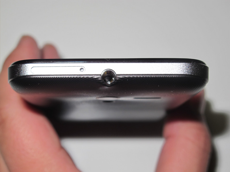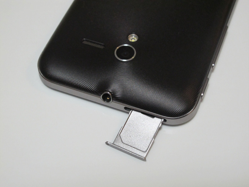 本体の上部側面には3.5mmのイヤホンジャックとSIMカードスロットが配置されています。SIMカードはmicroSIMを利用します。